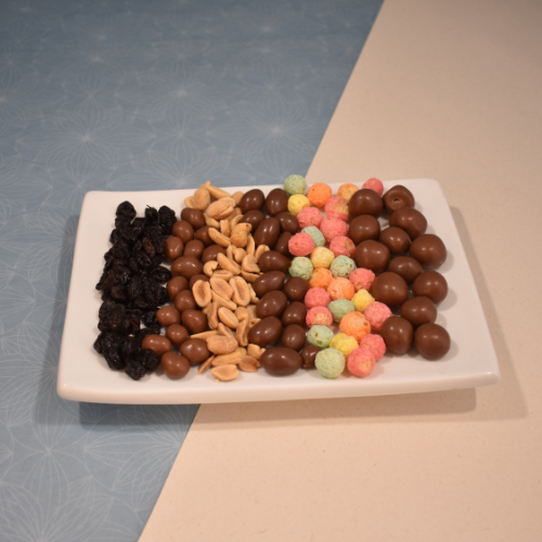 Tentaciones Truffelinos: una deliciosa colección de pequeños placeres. Disfruta corazones de chocolate, uvas pasas, maní y bolitas de cereal cubiertas con el mejor chocolate. Además, acá puedes encontrar la cáscara de naranja confitada: nuestro producto insignia. Un detalle elegante, auténtico y lleno de sabor para compartir o disfrutar en cualquier momento.